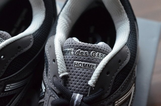シュータンにCOMME des GARONS HOMME のロゴ、インソールにダブルネームロゴを配したデザインが、特別なコラボレーションであることを象徴しています。