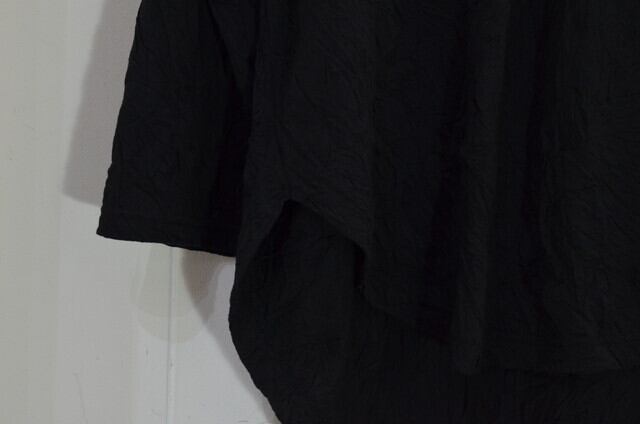 コットンとポリエステルの混紡糸を使用した天然風合いの天竺に、ハンドメイドでシワ加工を施し表情のある生地となっております。幅広い季節でご愛用いただけるアイテムとなっております。