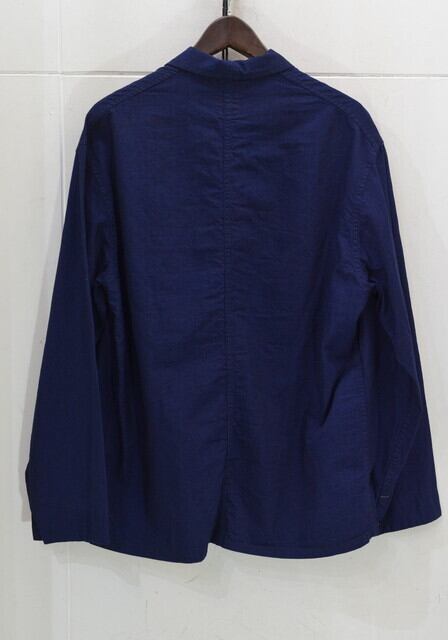 丸みを帯びた襟やフロントの3つのパッチポケット、内ポケット等、フレンチワークジャケットとフレンチチャイナそれぞれのディテールを取り入れシンプルながらも独特の雰囲気が漂っています。